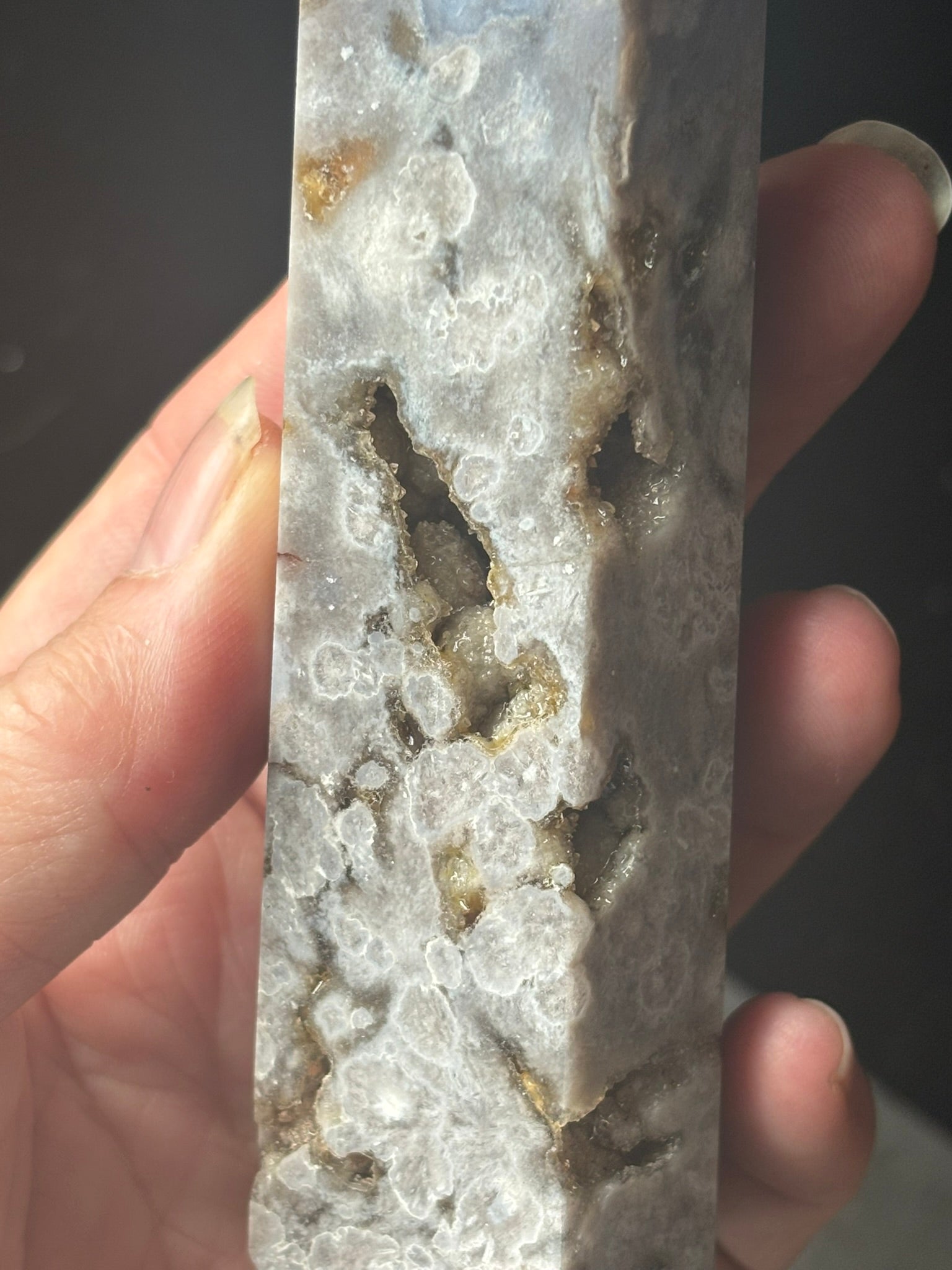 This version is less common than traditional pink flower agate and prized for its soft, serene appearance and cooling energetic profile.